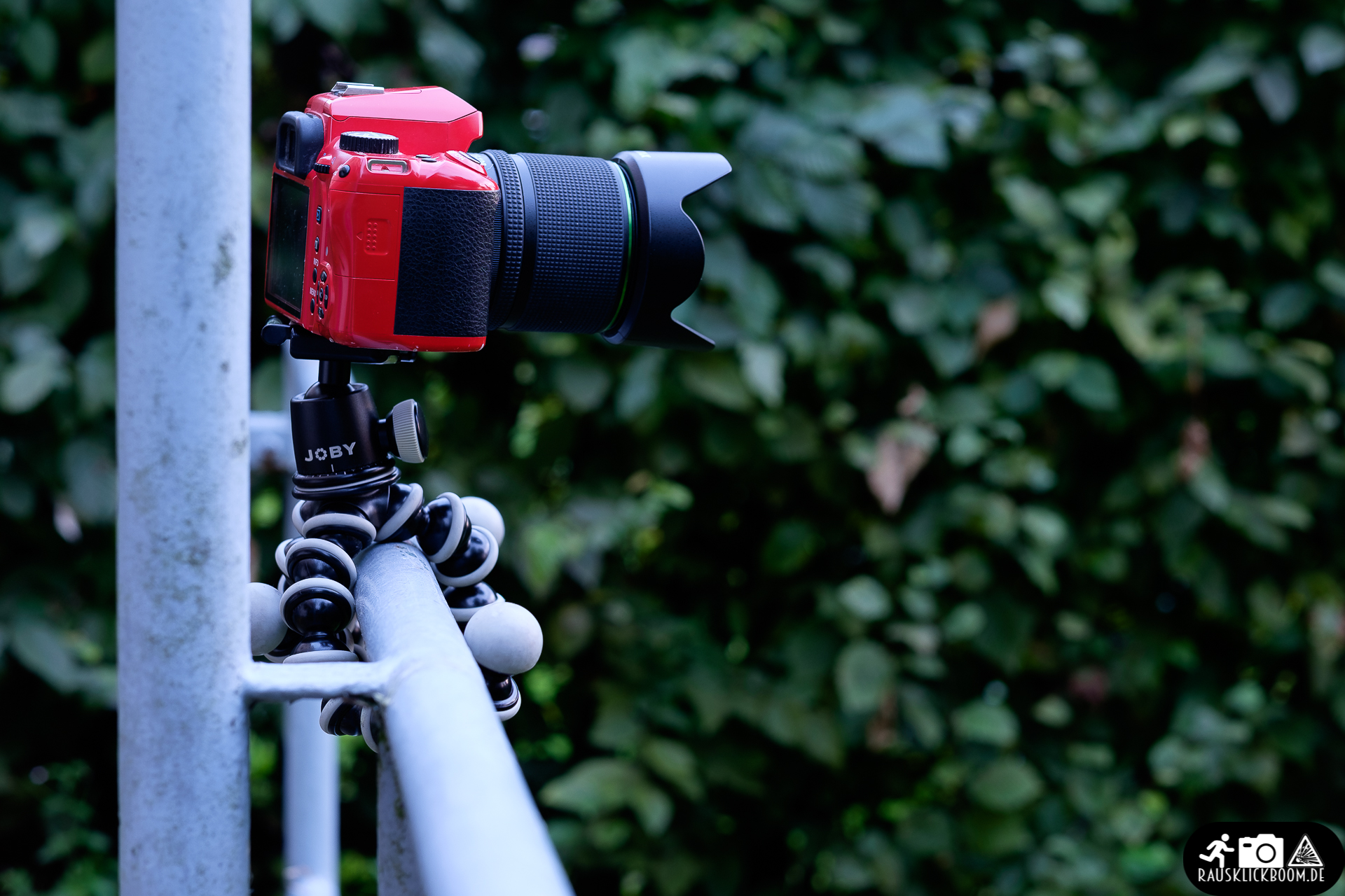 Hier muss man jedoch auch schon kritisch einhaken: Zum einen ist es im klammernden (statt stehendem) Zustand eigentlich kaum möglich, Stativ und somit die Kamera wirklich fest zu positionieren. Vielmehr verbleibt die Kamera durch das Gorillapod und das Eigengewicht sicher an Ort und Stelle – es besteht also keine Sturzgefahr – dran wackeln ist jedoch immer möglich. Je dünner und runder das Befestigungsziel, desto stärker die Problematik. Ich halte diese Tatsache nicht für weiter schlimm. Auch wenn das Stativ ein wenig Spiel hat reicht die Stabilität für eigentlich alle Situationen aus. Auch bei stärkerem Wind verharrt die Kamera durch das Eigengewicht in der jeweiligen Position. Trotzdem ist es ein Unterschied zum Handling mit einem klassischen Dreibein, das in extremen Situationen sogar noch zusätzlich beschwert werden kann.