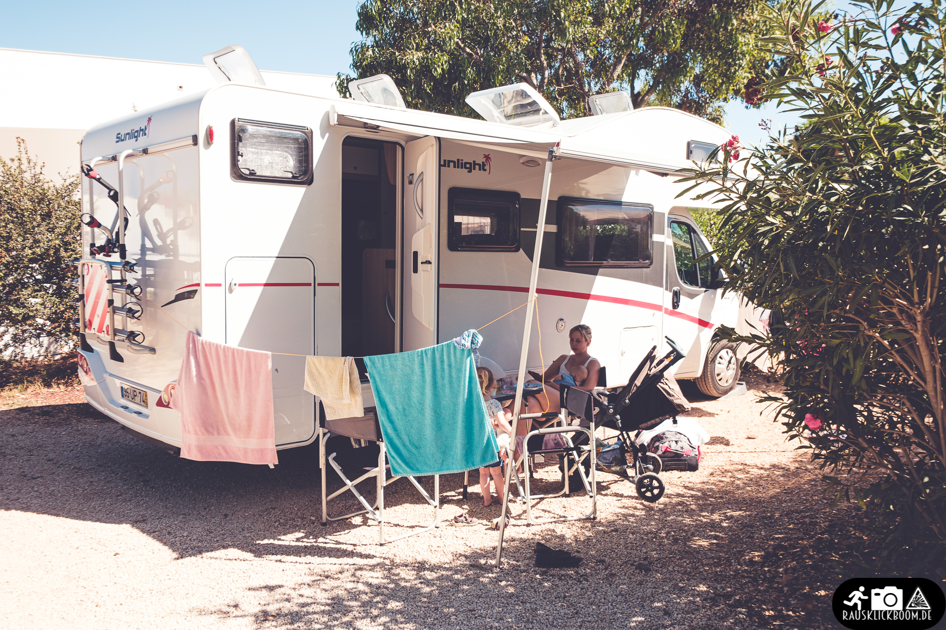Diese Form des Campens hat naturgemäß wenig von Abenteuer. Es gibt Schwimmbad, Yoga und Zaubershow, man steht relativ eng und kommt dadurch – das ist positiv – mit diesem und jenem ins Gespräch. Aber es ist auch irgendwie Club-Urlaub im Campervan. Das ist einfach der Character des Campens in der Region der Algarve. Trotzdem nehmen wir die Zeit zum Ausspannen und für das Amüsement der Kinder zwei Nächte lang gerne mit.