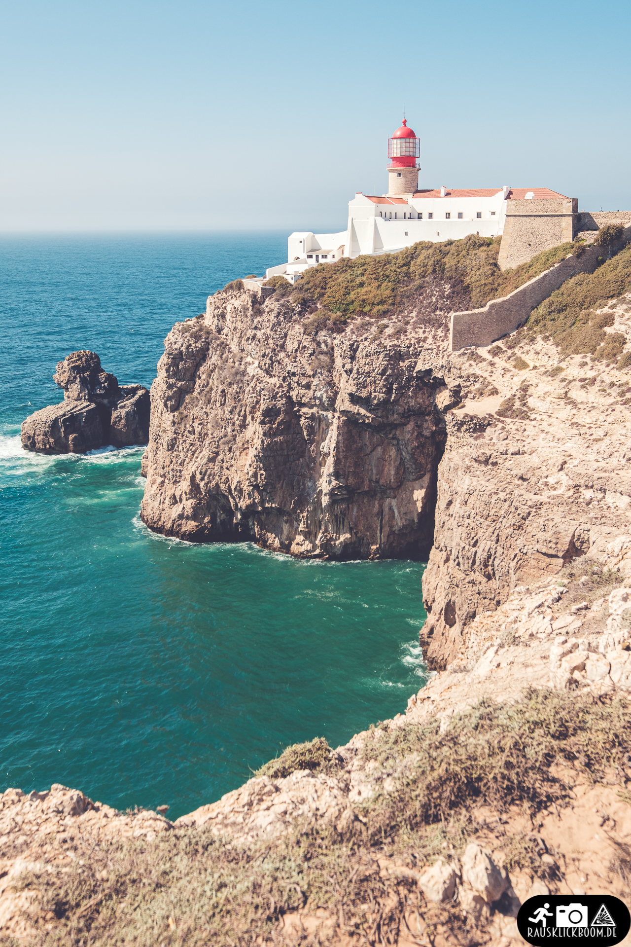 Trotzdem ist die Route ist traumhaft. Häufig sind es die Leuchttürme, die uns anziehen. Sie markieren einfach ein Ziel, an dem wir uns orientieren und die Strecke in Etappen einteilen können. Und schön sind sie auch noch wie hier am Cabo de Sao Vicente.