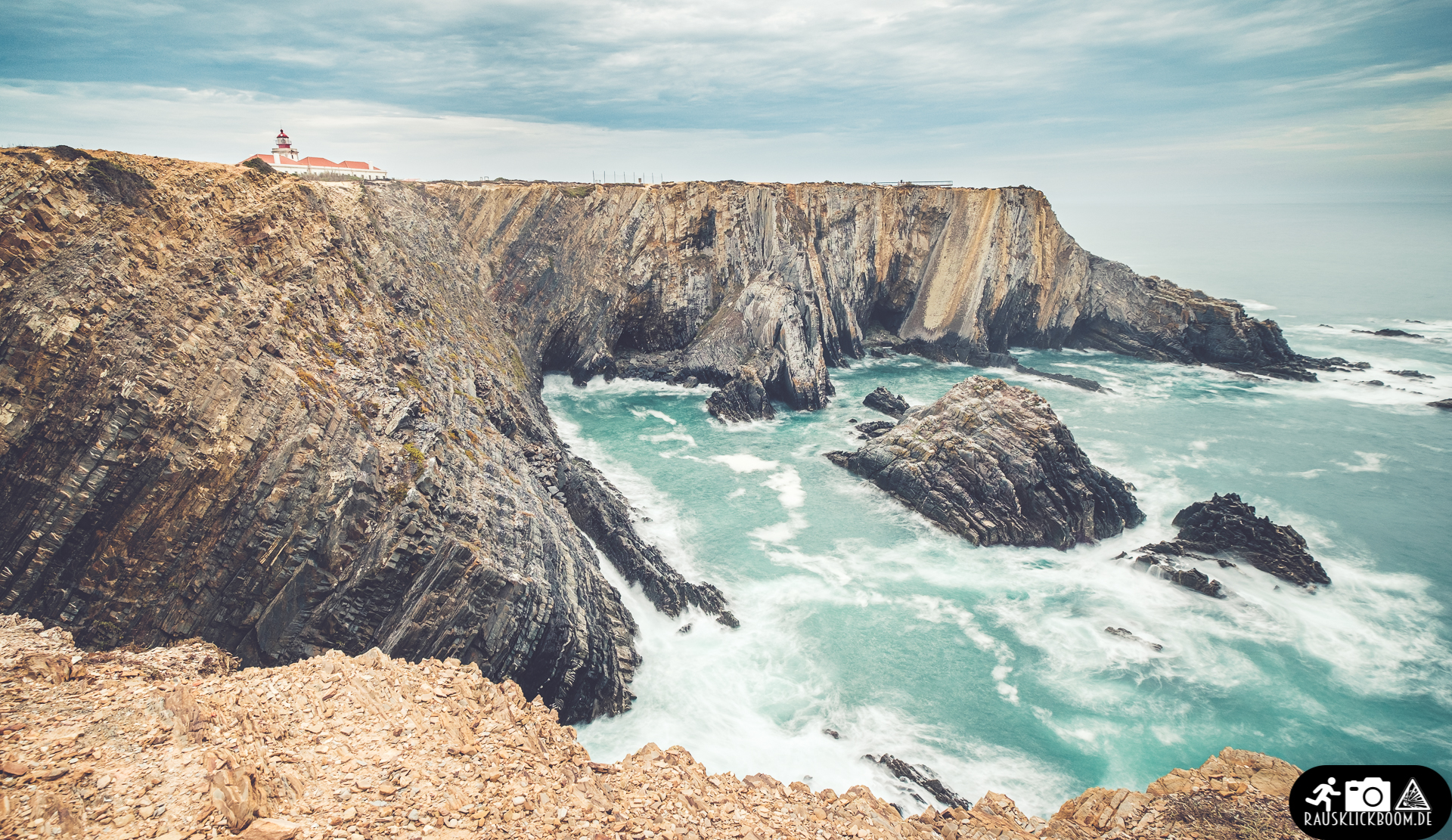 Besonders dieser Leuchtturm, der Farol do Cabo Sardao, hat es mir angetan. Schroff, wild und weitläufig mit einer riesigen Delfin-Schule auf der Durchreise vor der Küste. Da wäre ich jetzt gerne wieder.