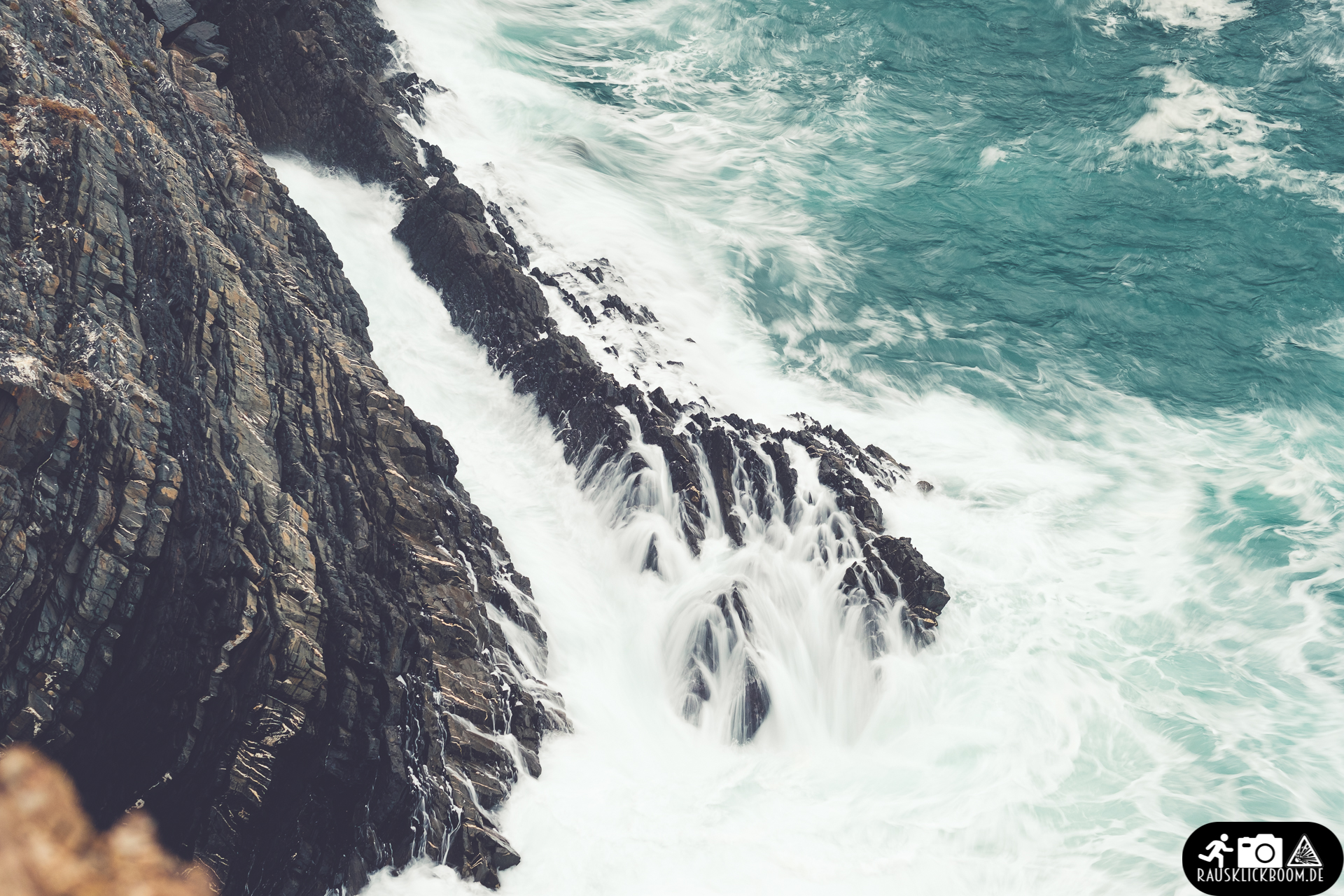 Vom Leuchtturm aus gibt es häufig ein wildes Netz ausgetretener Pfade entlang der Steilküste. Man ist hier ziellos, im besten Sinne. Fotografisch muss man sich fast schon zusammenreißen, nicht alles abzulichten. Ein Mittagspicknick für die Kinder mit Aufsichtsperson A gibt Person B auch Zeit und Freiraum, alleine mit der Kamera über die Klippen zu hüpfen und das Stativ aufzubauen. Denn besonders gut funktioniert gerade am helligten Tag ein ND-Filter. Die Verschlusszeit weniger Sekunden zeigt die Wildheit und Energie des Meeres und macht auch Szenen ohne besonderes Licht reizvoll.